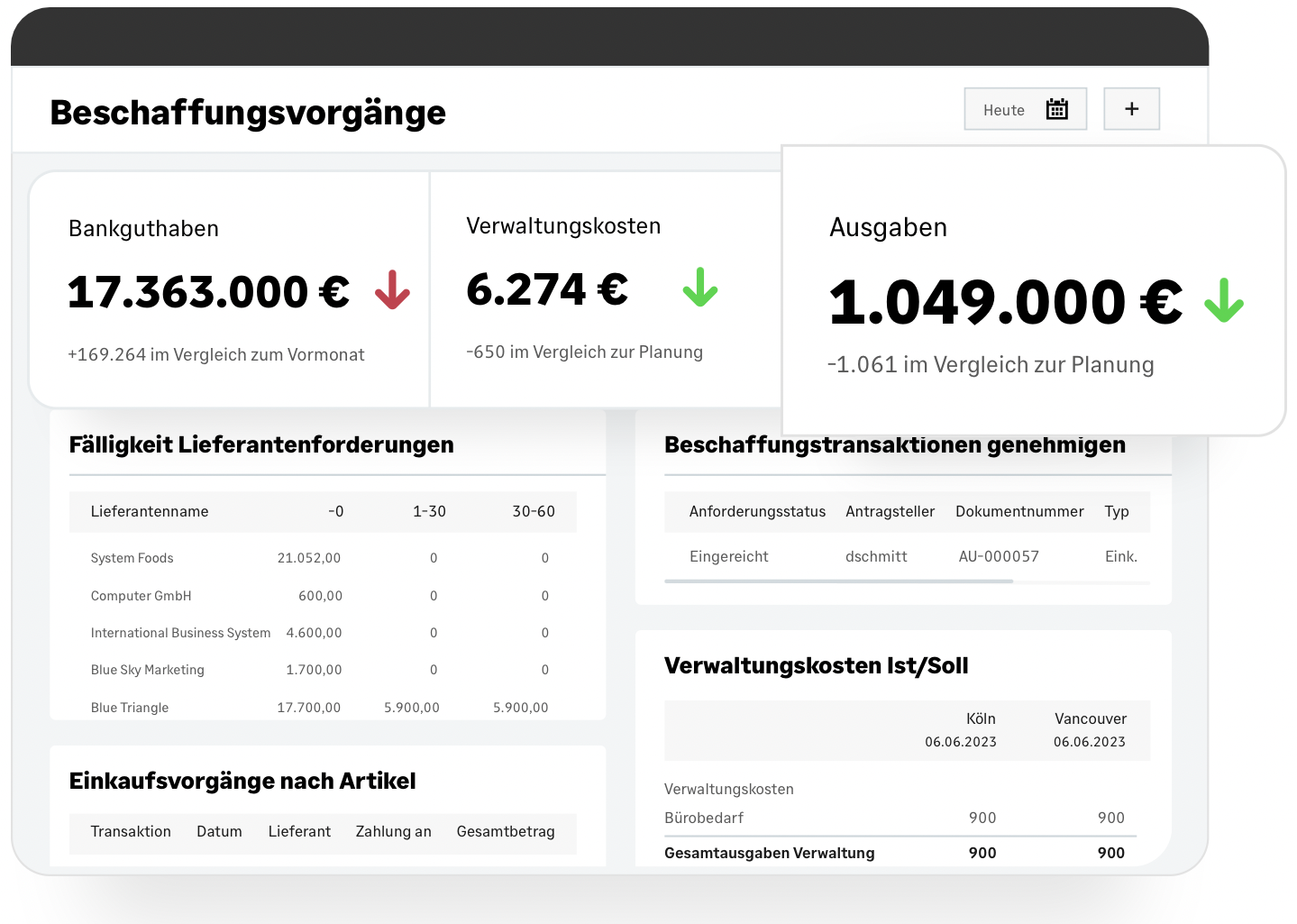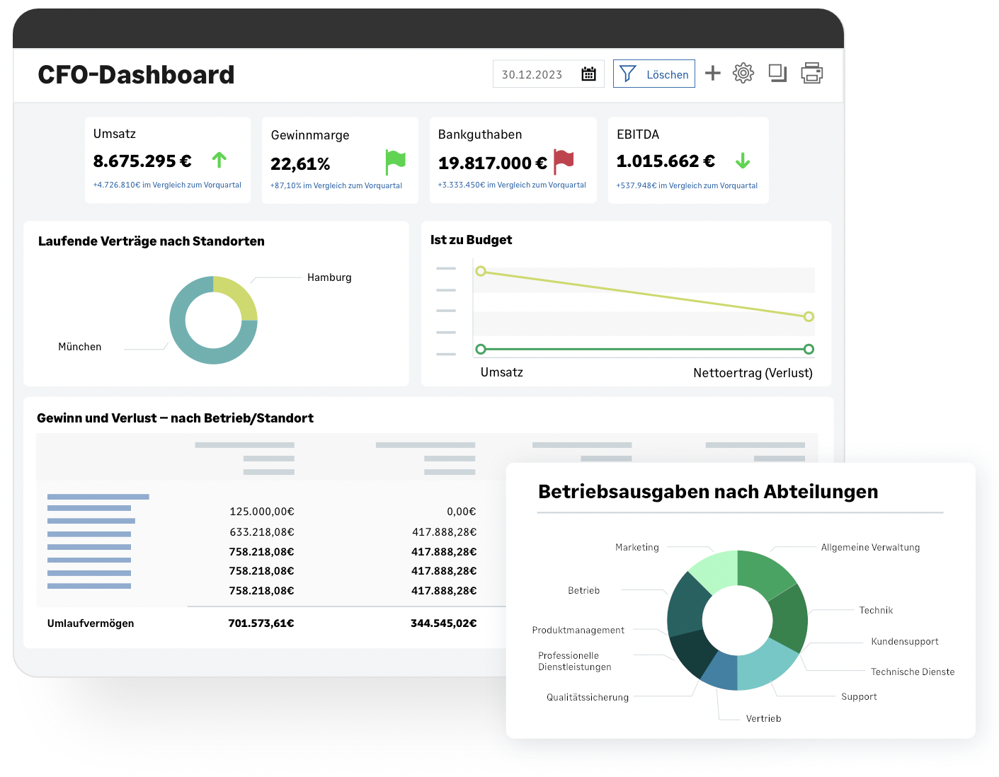 - Behalten Sie jederzeit den Überblick – mit individuell anpassbaren Dashboards für alle relevanten Unternehmenskennzahlen.